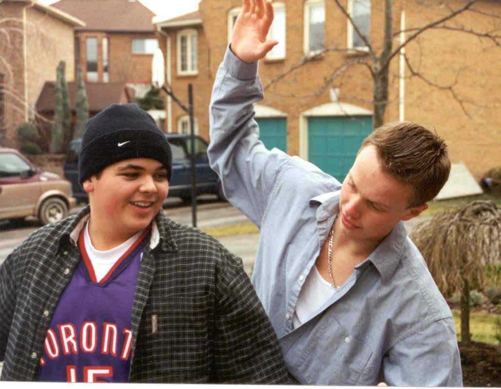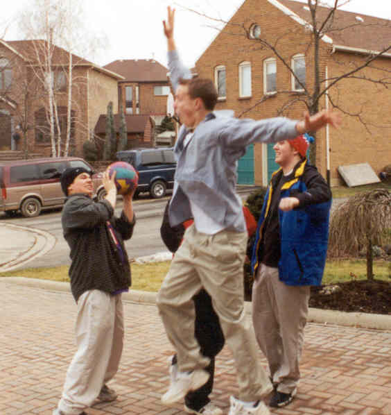 The boys play a little B-ball, well Alex, Brandon and Robin play, Kevin only thinks he does