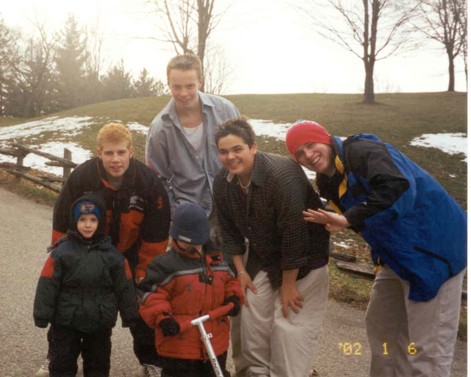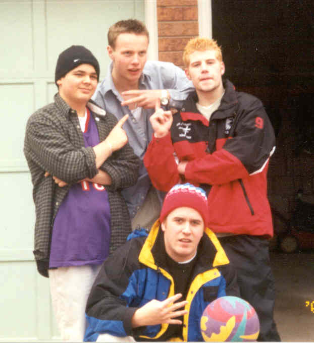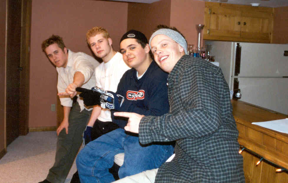 Brandon, Alex, Robin and Kevin take a break from shooting hoops for a quick photo.