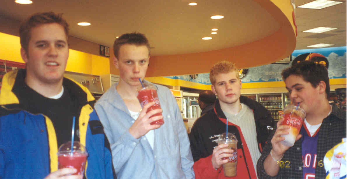 Kevin, Robin, Brandon and Alex taking a long needed break from their intense dance practices.